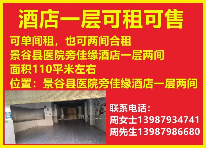 【景谷优质旺铺出租/出售】位置:景谷县医院旁佳缘酒店一层(共两间)面积...